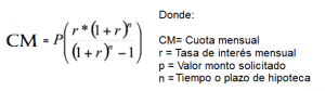 CM = pago (tasa,nper,va) en donde al aplicar la función “pago” muestra como resultado:
